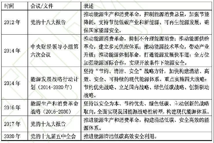 表1 重大會(huì)議/文件對(duì)能源戰(zhàn)略的表述