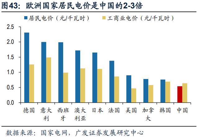 歐洲高電價存在天然配儲需求,光伏配儲能可大幅降低用電成本。據(jù)國家電網 統(tǒng)計,與可獲得數(shù)據(jù)的全球 35 個 OECD 國家比較,2019 年中國銷售電價每千瓦 時約 0.62 元,約為各國平均水平的 60%,居民用電價僅高于墨西哥。歐洲國家中 電價最高的德國,工業(yè)電價平均 1.26 元/KWh,居民電價平均 2.31 元/KWh,在海 外用電價格不斷提升的背景下,光伏配儲能可降低德國居民 72.7%的用電成本,高 電價催生天然配儲需求。