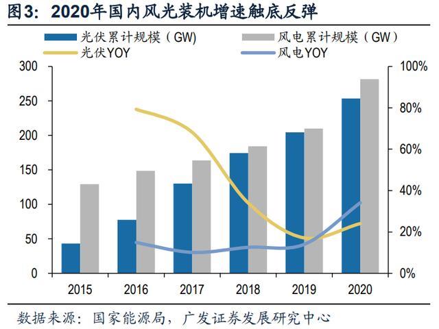 新能源裝機趨勢方興未艾。受光伏逐步進入全面平價期和陸上風電補貼退坡帶 來的搶裝潮影響,2020年全國光伏、風電新增裝機達48.2GW和71.7GW,同比大幅 增長60.1%和177.9%,截至2020年末,全國風電、光伏累計裝機規(guī)模達253.4GW和 281.7GW,同比增長24.1%和34.1%。新能源發(fā)電方面,2020年光伏、風電發(fā)電量 占比進一步提高至3.5%和6.3%,未來隨著新能源技術的不斷升級,風光發(fā)電成本進 一步下降帶動清潔能源的推廣普及,根據(jù)國家能源局發(fā)發(fā)布的《關于2021年風電、 光伏發(fā)電開發(fā)建設有關事項的通知》,預計到2025年風光發(fā)電量占比將提升至 16.5%,2030年全國風光裝機規(guī)模將超1200GW,新能源發(fā)電在電力體系中的地位 愈發(fā)重要。
