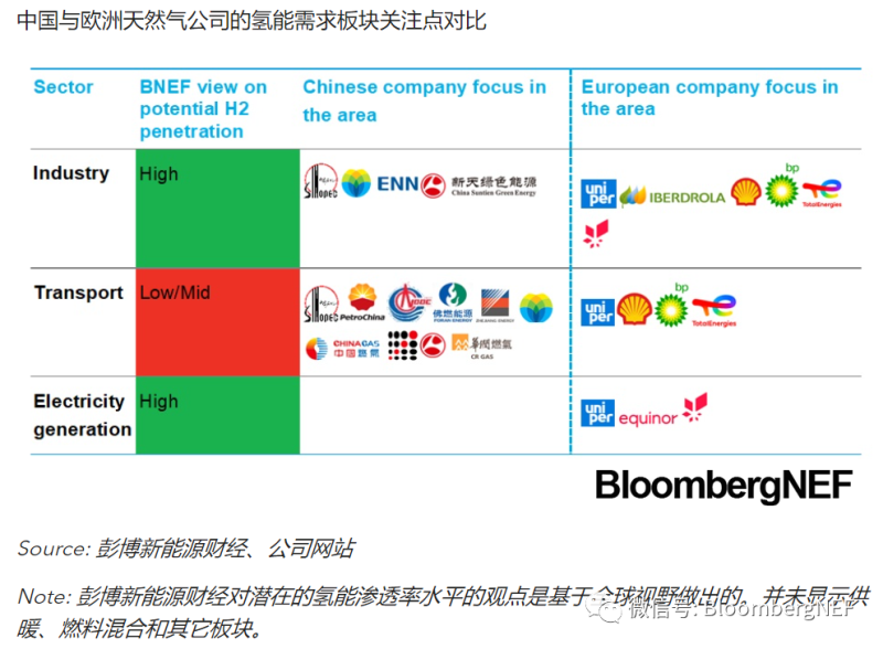 中國(guó)國(guó)有油氣公司在中國(guó)承諾碳中和后都宣布了各自的凈零目標(biāo),這些公司都希望以交通中氫能的應(yīng)用對(duì)沖汽油燃料未來(lái)銷售額的下滑趨勢(shì)。中國(guó)石化是三家中國(guó)國(guó)有油氣公司中目標(biāo)最為宏大的。它是中國(guó)目前最大的灰氫制造商,其位于內(nèi)蒙古和新疆的兩個(gè)項(xiàng)目也計(jì)劃在2022年投產(chǎn),具備510兆瓦的綠氫產(chǎn)能。與之相對(duì),2020年全年全球僅交付了200兆瓦電解氫。中國(guó)石化的項(xiàng)目有望供應(yīng)氫能用于化工生產(chǎn)和冶煉。