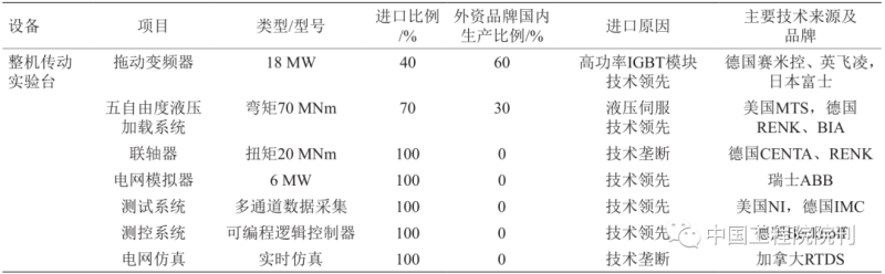 表 3 主軸承、傳動(dòng)鏈試驗(yàn)檢測(cè)設(shè)備進(jìn)口情況