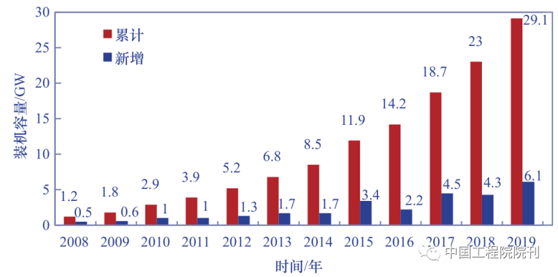 面對(duì)能源短缺、環(huán)境污染、氣候變化等人類(lèi)共同的難題,一場(chǎng)以大力開(kāi)發(fā)利用可再生能源為主題的能源革命在世界范圍內(nèi)興起。十九大報(bào)告中指出,要推進(jìn)能源生產(chǎn)和消費(fèi)革命,構(gòu)建清潔低碳、安全高效的能源體系。2020 年 9 月和 12 月,習(xí)近平主席分別在第七十五屆聯(lián)合國(guó)大會(huì)和氣候雄心峰會(huì)上宣布將提高國(guó)家自主貢獻(xiàn)力度,提出到 2030 年,非化石能源占一次能源消費(fèi)比重將達(dá)到 25% 左右,風(fēng)電、太陽(yáng)能發(fā)電總裝機(jī)容量將達(dá)到 1.2×109kW 以上;二氧化碳排放力爭(zhēng)于 2030 年前達(dá)到峰值,努力爭(zhēng)取于 2060 年前實(shí)現(xiàn)碳中和。這一系列措施進(jìn)一步明確了新時(shí)代我國(guó)能源發(fā)展的方向。