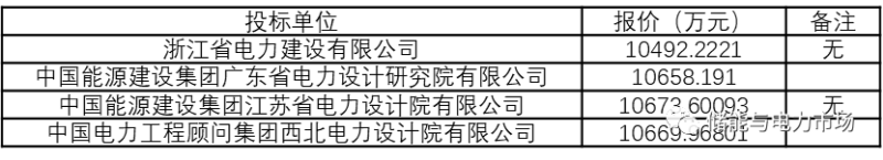 浙江省電力建設(shè)有限公司報價最低,為10492萬元。