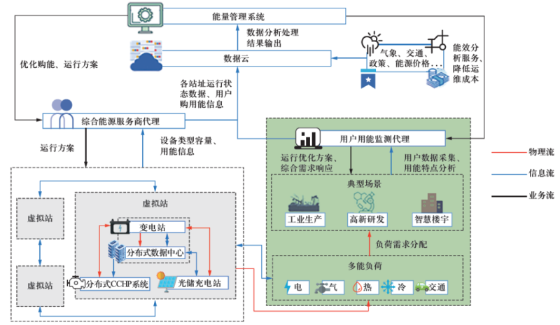 ? 圖2 虛擬站能量流-信息流-業(yè)務(wù)流多層次協(xié)調(diào)運行架構(gòu)