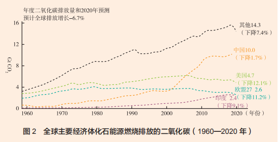 中國排放總量占全球排放總量的比重超過1/4,人均排放量也已超過歐盟的人均水平。項(xiàng)目綜合報(bào)告編寫組(2020)指出,中國2020年的排放在總量上已然超過經(jīng)濟(jì)合作與發(fā)展組織(OECD),也就是發(fā)達(dá)國家俱樂部全體成員的排放總量。