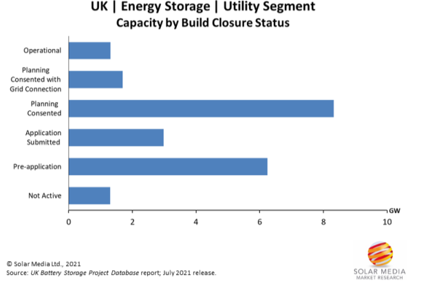 英國大約有10.5GW儲(chǔ)能項(xiàng)目部署計(jì)劃申請獲得批準(zhǔn),并有可能在未來幾年內(nèi)部署。