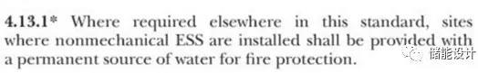 解讀:電化學儲能配置永久性的消防給水系統(tǒng)。國內(nèi)早期很多項目未設(shè)置水消防系統(tǒng),僅采用艙內(nèi)的七氟丙烷等滅火設(shè)施。目前,多數(shù)項目也均要求場站配置消防給水系統(tǒng)。