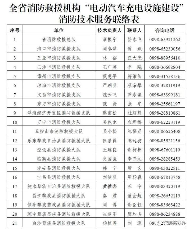 海南省消防救援總隊關(guān)于“電動汽車充電設(shè)施建設(shè)”消防技術(shù)服務(wù)措施通告
