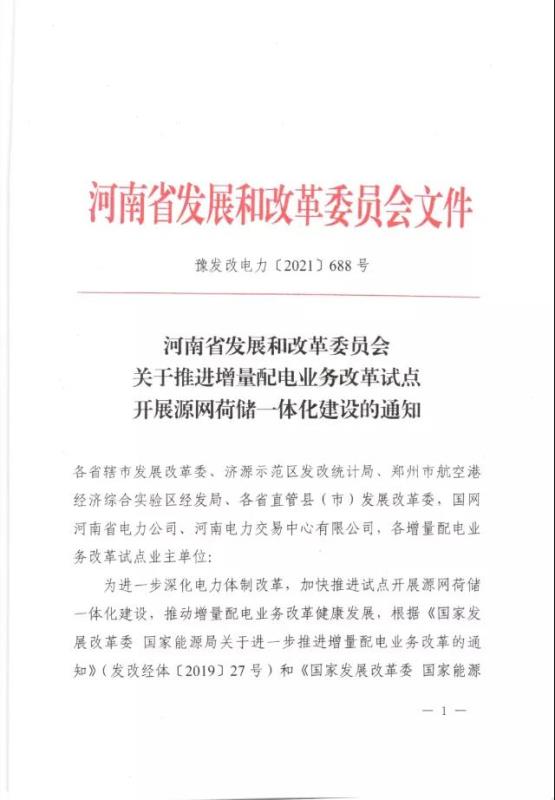 8月19日,河南省發(fā)改委印發(fā)《關(guān)于推進(jìn)增量配電業(yè)務(wù)改革試點(diǎn)開(kāi)展源網(wǎng)荷儲(chǔ)一體化建設(shè)的通知》,就開(kāi)展源網(wǎng)荷儲(chǔ)一體化建設(shè)和示范工程項(xiàng)目申報(bào)給出指導(dǎo)意見(jiàn)。