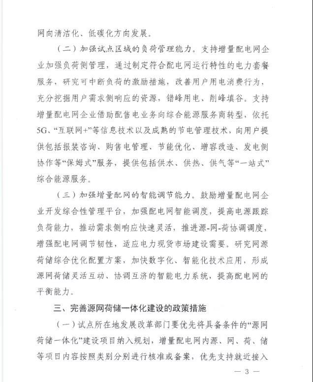 在具體政策方面,試點(diǎn)所在地發(fā)改委部門(mén)要優(yōu)先將具備條件的“源網(wǎng)荷儲(chǔ)一體化”建設(shè)項(xiàng)目納入規(guī)劃,優(yōu)先支持就近接入增量配電網(wǎng)的風(fēng)電、光伏項(xiàng)目。各市縣主管部門(mén)在編制規(guī)劃時(shí),要明確試點(diǎn)推進(jìn)源網(wǎng)荷儲(chǔ)一體化建設(shè)發(fā)展的目標(biāo)和任務(wù)。