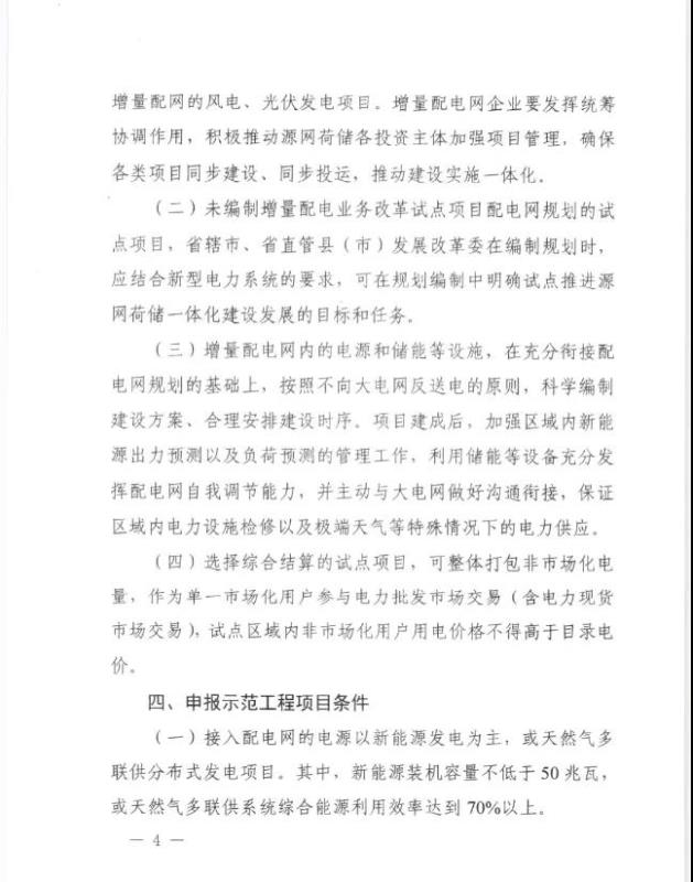 鼓勵(lì)各試點(diǎn)主體根據(jù)資源條件和用電特性合理配建一定比例的調(diào)節(jié)性、靈活性電源,支持符合政策且納入規(guī)劃的風(fēng)電光伏發(fā)電項(xiàng)目、獨(dú)立電儲(chǔ)能以及分布式電源就近以適當(dāng)電壓接入增量配電網(wǎng),就近消納。