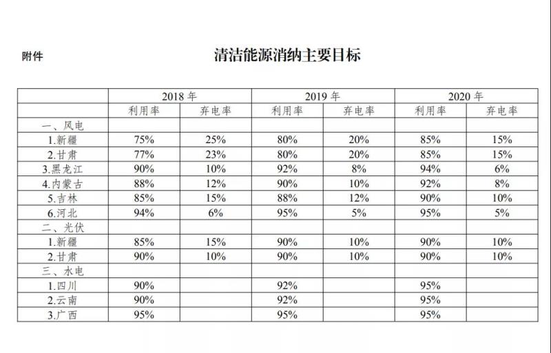 在此背景下,國家發(fā)展改革委、國家能源局聯(lián)合印發(fā)《清潔能源消納行動計劃(2018-2020年)》,定下了2020年平均風電、光伏發(fā)電、水能利用率95%的目標。