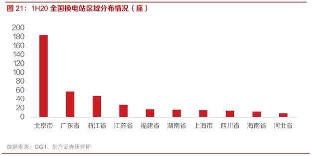 換電站運營商利用先發(fā)優(yōu)勢,搶占優(yōu)勢區(qū)位,成為后續(xù)運營的核心壁壘之一,且換電站重投資屬性 使得同一區(qū)位重復投資概率大大降低。根據(jù)上文測算模型,單站的利用率是盈利的關鍵,而換電站 的利用率提升,一方面是整體換電車型滲透率提升,更關鍵的是在發(fā)達省份的關鍵位置布局換電站, 這也就是換電站的先發(fā)優(yōu)勢。根據(jù) GGII 數(shù)據(jù),截至 2020 年 6 月,我國換電站保有量總計 452 座。 分省市來看,排名前十的依次為北京、廣東、浙江、江蘇、福建、湖南、上海、四川、海南、河北, 其中北京因奧動新能源與北汽合作的出租車采用換電模式,換電站數(shù)量居全國首位。從協(xié)鑫能科公 告的換電站建設計劃來看,大部分亦集中于江蘇、廣東、浙江等經(jīng)濟發(fā)達且新能源汽車銷量高的省 份。抓住重點城市的重點區(qū)位進行搶先布局,或成為換電模式進一步普及、換電車型進一步拓展后, 換電站運營商的核心壁壘之一。