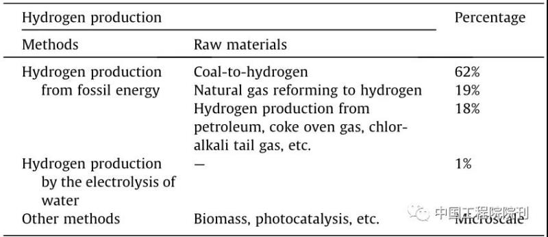 表1 中國(guó)的氫氣生產(chǎn)結(jié)構(gòu)現(xiàn)狀