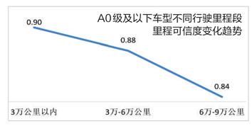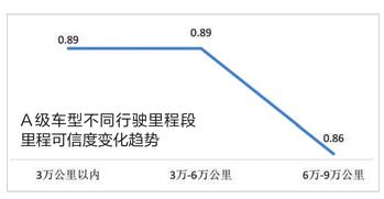 A0級及以下車型隨里程數(shù)增加可信度降低明顯