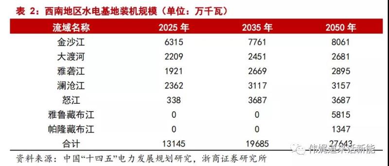 我國將持續(xù)開發(fā)水、風(fēng)、光在內(nèi)的多個(gè)清潔能源基地。根據(jù)《中國“十四五”電力發(fā)展規(guī)劃研究》,未來我國將持續(xù)重點(diǎn)開發(fā)包括水電、陸風(fēng)、海風(fēng)、光伏等電源在內(nèi)的多個(gè)清潔能源基地,進(jìn)而形成9個(gè)一體化能源基地的開發(fā)格局。分電源類型來看,預(yù)計(jì)到2025/2035/2050年,我國西南地區(qū)水電基地的總裝機(jī)規(guī)模將分別達(dá)到1.31/1.97/2.76億千瓦;陸上風(fēng)電基地的總裝機(jī)規(guī)模將分別達(dá)到0.8/2.55/3.98億千瓦;海上風(fēng)電基地的總裝機(jī)規(guī)模將分別達(dá)到0.3/0.71/1.32億千瓦;太陽能發(fā)電基地的總裝機(jī)規(guī)模將分別達(dá)到0.56/3.09/5.46億千瓦。