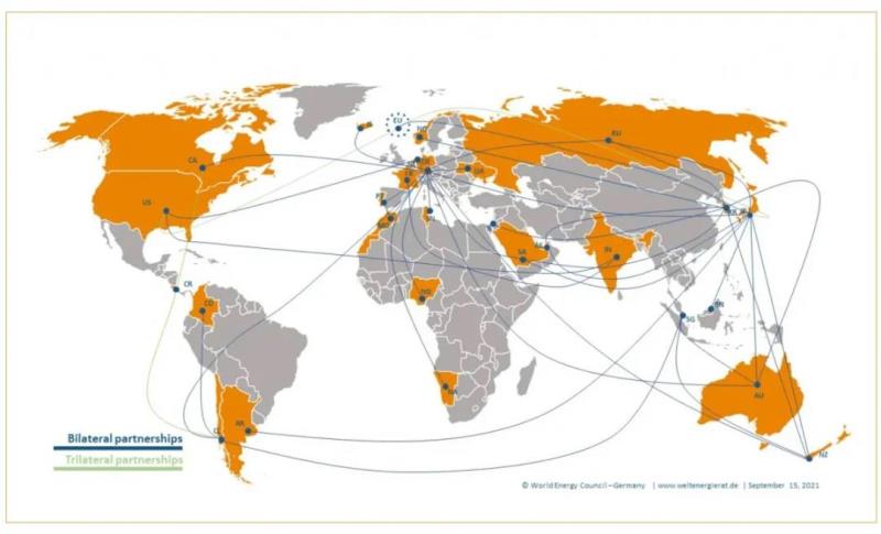 世界能源理事會(World Energy Council)的數(shù)據(jù)顯示,全球氫合作伙伴的數(shù)量正在增加,并可能進一步增加。該組織統(tǒng)計了自2017年以來全球建立的41個低碳或零碳氫的進出口合作伙伴關系,其中大多數(shù)是在過去兩年中建立的??赡艹蔀闅涞膬暨M口國的幾個國家如德國、日本和韓國建立了大量的政府間氫能合作關系,德國和日本與其他國家建立的伙伴關系最多,分別有13個和9個。澳大利亞、智利和沙特阿拉伯等希望從氫出口中獲得經(jīng)濟利益并建立氫經(jīng)濟的國家,在國際上也越來越積極地尋找合作伙伴來建立氫合作。