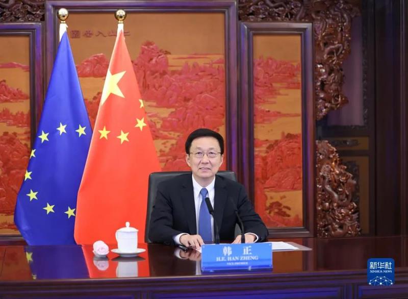 中共中央政治局常委、國務(wù)院副總理韓正27日在北京通過視頻方式同歐盟委員會執(zhí)行副主席蒂默曼斯舉行第二次中歐環(huán)境與氣候高層對話。