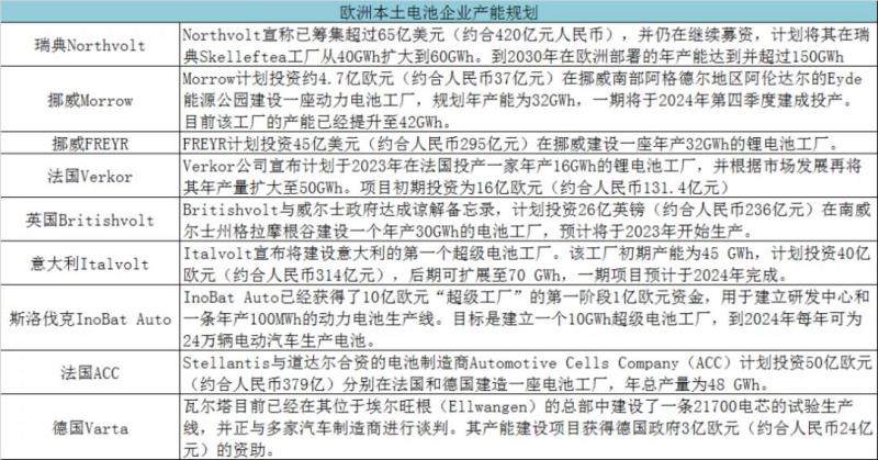 其中,該資助計劃向Northvolt、ACC等為代表的歐洲本土電池企業(yè)傾斜力度更大,表明歐盟對建立歐洲本土規(guī)模生產(chǎn)供應(yīng)能力的意愿更為強烈。