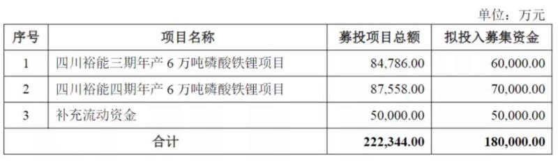 此次IPO,湖南裕能擬募集18億元,用于四川裕能三/四期年產6萬噸磷酸鐵鋰項目以及補充流動資金,合計新增年產12萬噸磷酸鐵鋰產能。