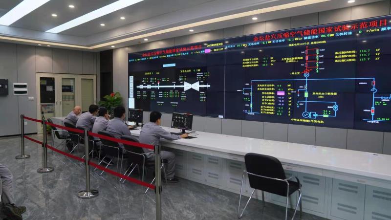 作為世界首個非補燃壓縮空氣儲能電站,項目攻克了設備研發(fā)、首次集成等多方面的難題,取得了豐碩成果。中鹽集團利用先進的造腔和注采技術,承擔地下儲氣庫建設;中國華能發(fā)揮電力專業(yè)技術優(yōu)勢,承擔項目的建設和運維。同時,國家電網(wǎng)、東方電氣、哈爾濱電氣、上海電氣、中國能建、中國電建、中國石油、中國石化、沈鼓集團和浙建集團等能源行業(yè)“國家隊”均參與了項目建設。該項目所有主設備均為國產首臺套,發(fā)揮著 “出技術” “出標準” “出人才”以及“探索運營機制”的示范功能,承擔著為開發(fā)鹽穴壓縮空氣儲能技術提供中國方案、創(chuàng)建我國完全自主知識產權技術體系、推動這一新型儲能技術產業(yè)化發(fā)展的重任。