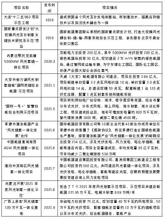 表1 近年我國(guó)風(fēng)光氫儲(chǔ)項(xiàng)目建設(shè)情況匯總