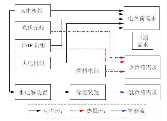 綜合能源系統(tǒng)是以電力系統(tǒng)為核心,打破電、氣、冷、熱等能源供應(yīng)系統(tǒng)單獨(dú)規(guī)劃運(yùn)行的模式,在規(guī)劃、設(shè)計(jì)、建設(shè)和運(yùn)行過(guò)程中,對(duì)各類(lèi)能源分配、轉(zhuǎn)化、存儲(chǔ)、消費(fèi)等環(huán)節(jié)進(jìn)行有機(jī)協(xié)調(diào)與優(yōu)化,充分利用可再生能源的新型區(qū)域能源供應(yīng)系統(tǒng)。這其中,風(fēng)光氫儲(chǔ)系統(tǒng)被認(rèn)為是未來(lái)最為可行的新型能量?jī)?chǔ)存和轉(zhuǎn)化的方法之一。