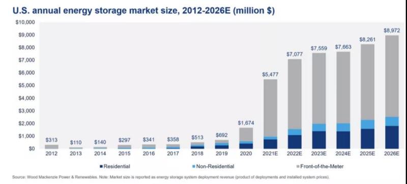 在最新的一份美國(guó)儲(chǔ)能監(jiān)測(cè)報(bào)告中,數(shù)據(jù)預(yù)測(cè),到2026年,美國(guó)儲(chǔ)能市場(chǎng)將增長(zhǎng)至每年35GWh,價(jià)值89億美元。