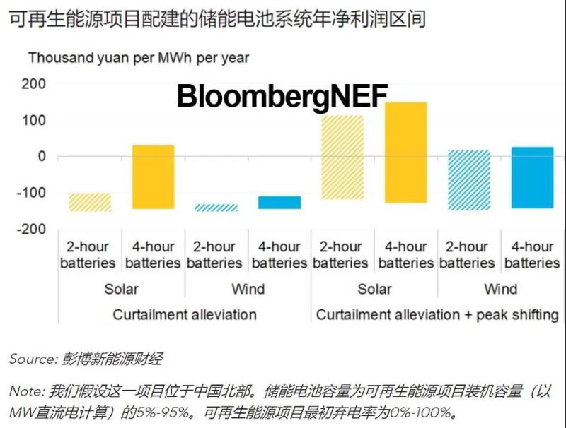 在兩個案例中,連續(xù)儲能時長四小時的儲能電池的盈利能力要好于兩小時的儲能電池。以兆瓦時為單位計算,前者不僅更為便宜,且能夠更顯著地減少棄風棄光。