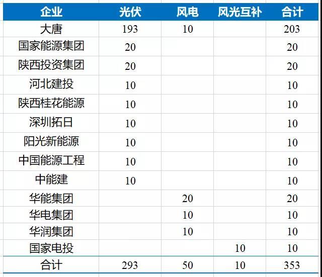 中能建、陽光新能源、河北建投、中國能源工程、深圳拓日、陜西桂花能源:每家獲得10萬千瓦的規(guī)模;