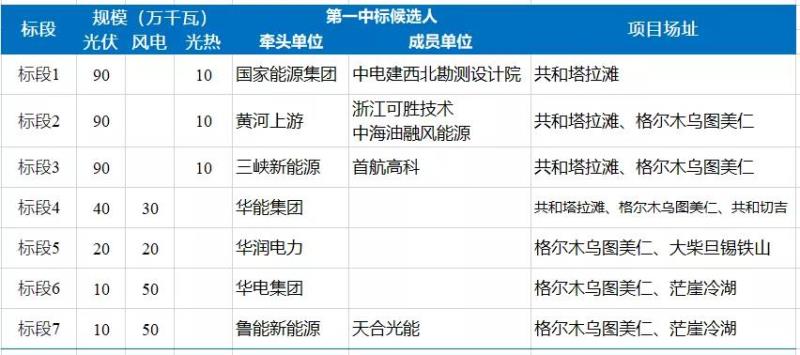 9月23日,白城市政府公示了競爭性優(yōu)選結(jié)果。四個標(biāo)段分別由:國家電投、中電建、中廣核、大唐獲得,具體如下表所示。