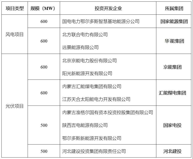 9月30日,準(zhǔn)格爾旗人民政府公示了項(xiàng)目的競爭性配置結(jié)果。其中: