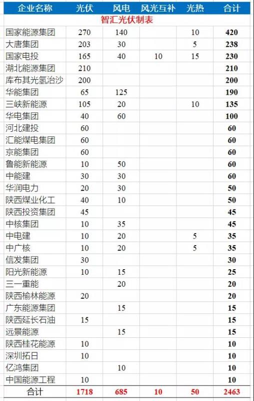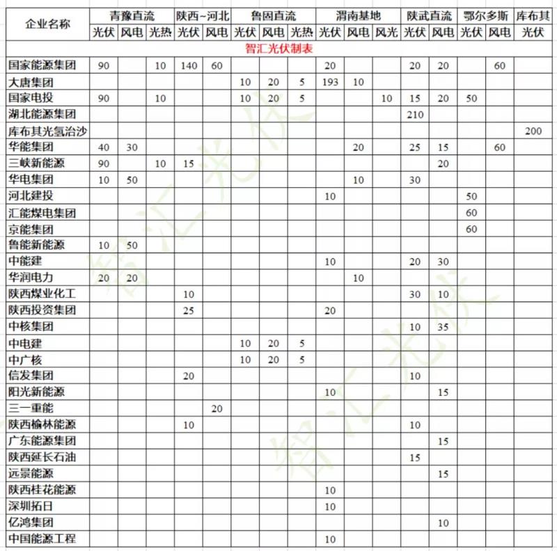國家能源集團(tuán)、陜西投資集團(tuán)、華能集團(tuán):每家獲得20萬千瓦的規(guī)模;