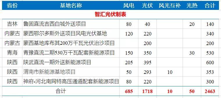685萬千瓦風(fēng)電項(xiàng)目、1718萬千瓦光伏項(xiàng)目、10萬千瓦風(fēng)光互補(bǔ)項(xiàng)目、50萬千瓦光熱項(xiàng)目。