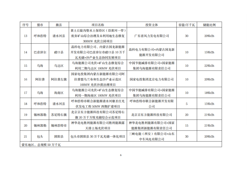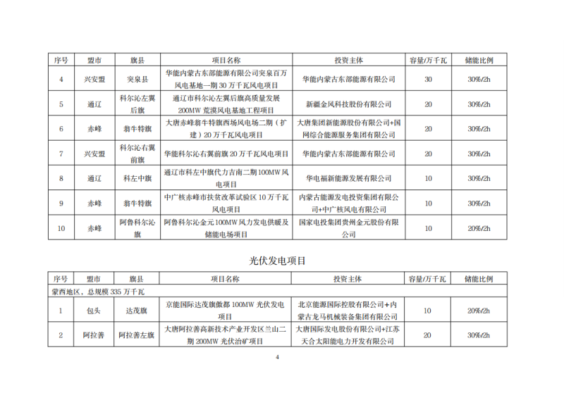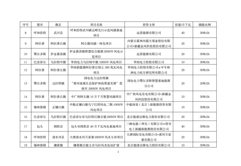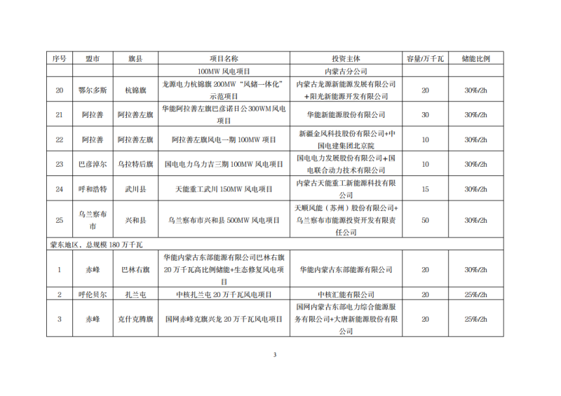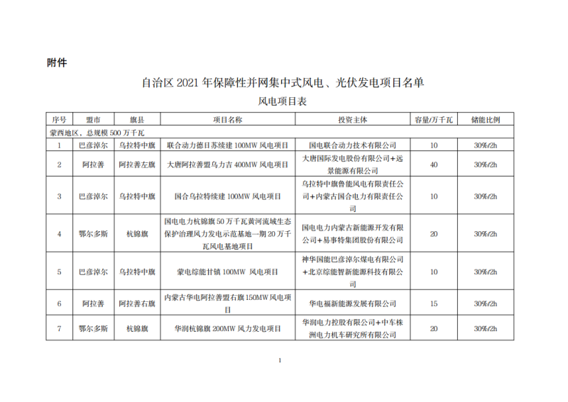 內(nèi)蒙古自治區(qū)2021年保障性風(fēng)光發(fā)電項(xiàng)目配置儲(chǔ)能一覽表