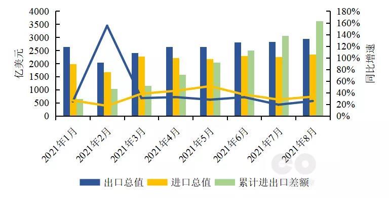 圖3 2021年1-8月我國進出口情況