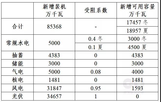 表4 “十四五”可用容量供應(yīng)增量(不含煤電)