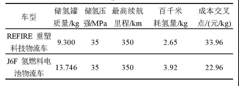表3 2種氫燃料電池物流車的參數(shù)