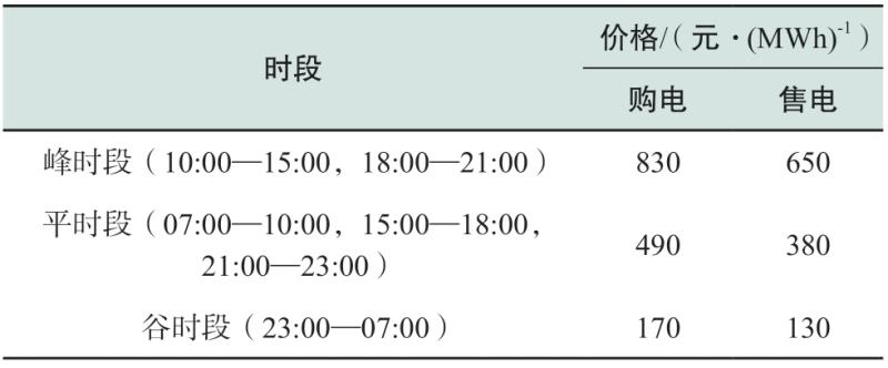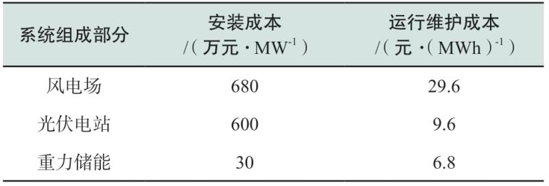 風(fēng)光儲多能源混合系統(tǒng)中風(fēng)電場、光伏電站、重力儲能的安裝成本及運(yùn)行維護(hù)成本如附錄A表A1所示[7,16,27],不同發(fā)電方式下各類污染物的環(huán)境價值成本如附錄B表B2所示[28]。另外,電網(wǎng)及系統(tǒng)售電的分時電價如附錄B表B3所示[29]。