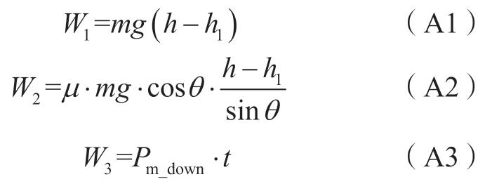 式中:W1為重物在加速階段時的能量損耗;W2為重物下滑過程中的摩擦損耗;W3為重物下滑過程中電動機(jī)工作所需的能量;t為重物下滑過程中電動機(jī)工作時間。