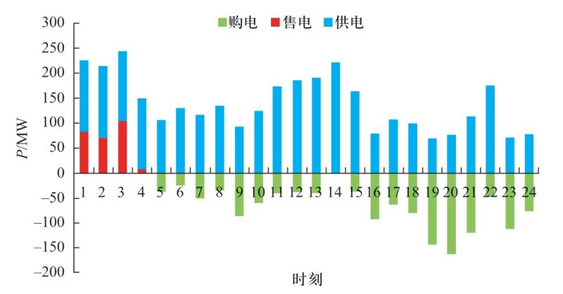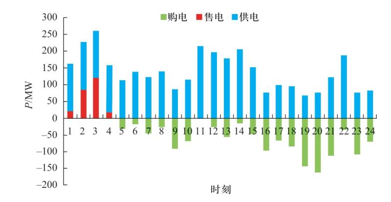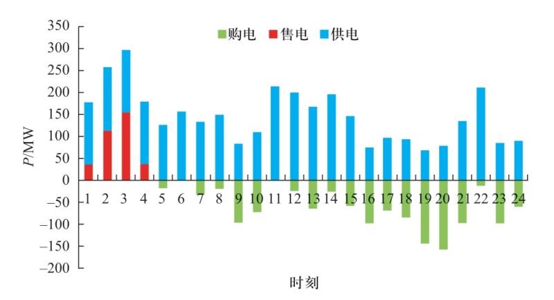 Fig.11 Power supply, power purchase and power sale of planning scheme 2 in a typical day