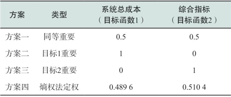 表1 4種方案權(quán)重設(shè)置