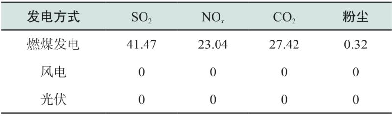 表B2 不同發(fā)電方式下各類污染物的環(huán)境價值成本