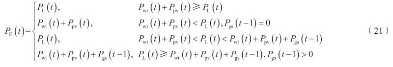 式中:D為風(fēng)光互補(bǔ)特性,表示風(fēng)力發(fā)電和光伏發(fā)電的輸出功率之和相對于負(fù)荷功率的波動[19];f為供電自給損失率,以系統(tǒng)供給過程中負(fù)荷的缺少電量表示系統(tǒng)供電可靠性;R為風(fēng)光儲多能源混合系統(tǒng)貢獻(xiàn)率,以系統(tǒng)供給負(fù)荷的功率占負(fù)荷功率的比值表示;c1、c2、c3分別為3個指標(biāo)的權(quán)重系數(shù),3個指標(biāo)同等重要,故均為1/3;pagenumber_ebook=49,pagenumber_book=467為負(fù)荷的平均功率;Pwt(t)為t時刻風(fēng)力發(fā)電的功率;Ppv(t)為t時刻光伏發(fā)電的功率;PL(t)為t時刻負(fù)荷的功率;Pgs(t)為t時刻重力儲能功率;PE(t)為t時刻系統(tǒng)提供給負(fù)荷的功率。