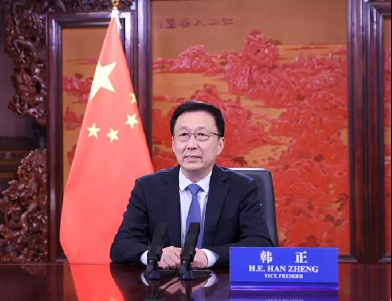 中共中央政治局常委、國務(wù)院副總理韓正在北京以視頻方式出席“2021俄羅斯能源周”國際論壇并發(fā)表致辭。新華社記者 王曄 攝