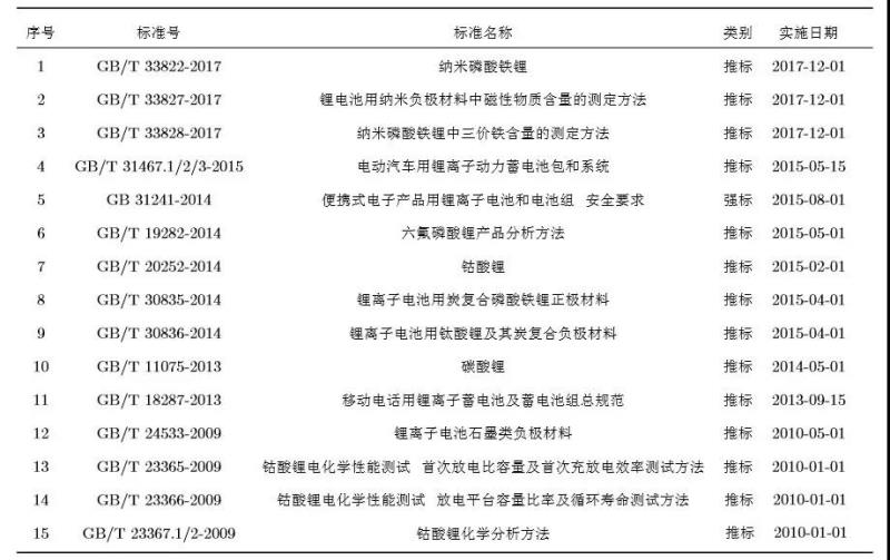 表1 國內(nèi)現(xiàn)行鋰電池相關(guān)標(biāo)準(zhǔn)