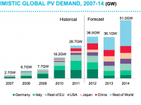 盡管BNEF最樂觀的預測是到2014年全球需求達到51GW,保守需求估計是31.7GW