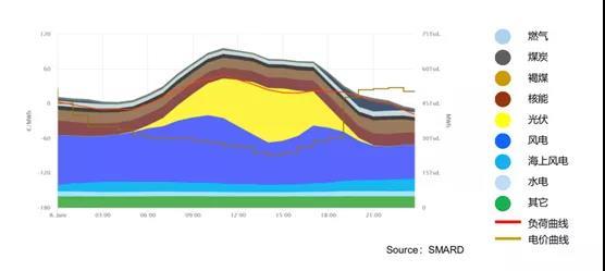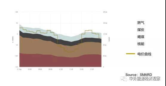 歐洲尤其是德國隨著可再生能源比例增加,現(xiàn)貨市場上出現(xiàn)負(fù)電價的時候越來越多,主要出現(xiàn)在風(fēng)電和光伏發(fā)電同時達到最高峰的時候,也就是發(fā)電過剩的時候。