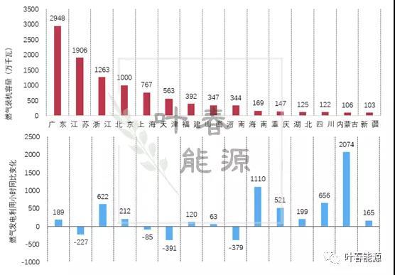 圖10 截止2021年8月底燃?xì)庋b機(jī)情況和2021年1-8月燃?xì)獍l(fā)電利用小時(shí)同比變化情況