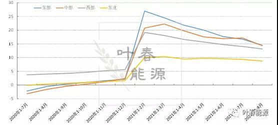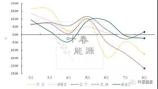 圖9 2021年以來河北、內(nèi)蒙古、東三省煤電發(fā)電量增速走勢